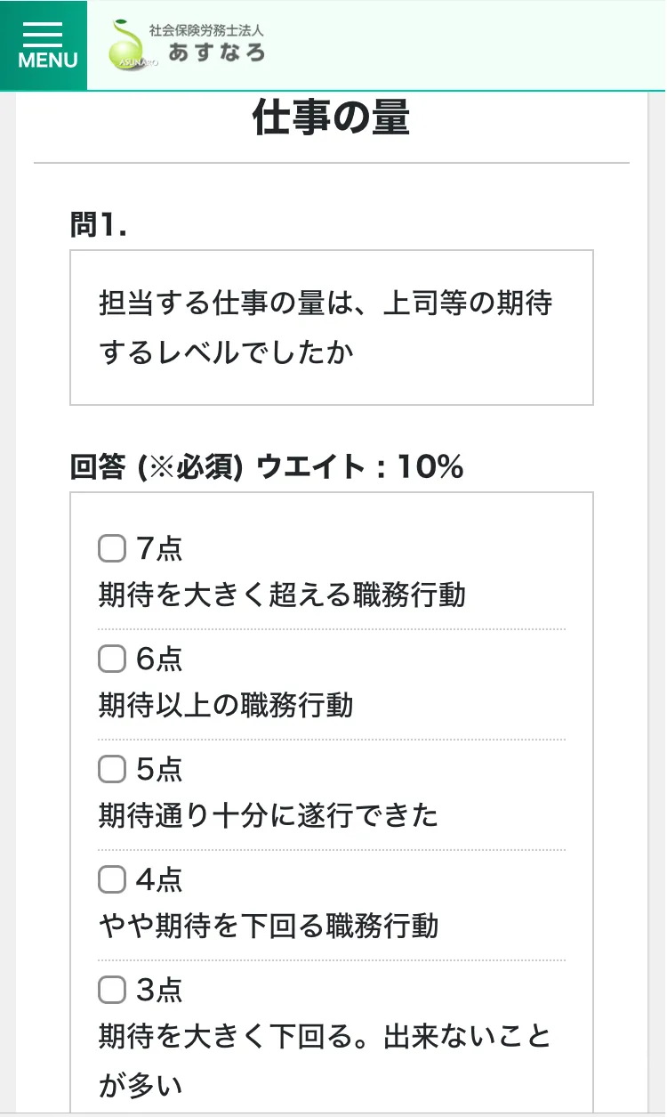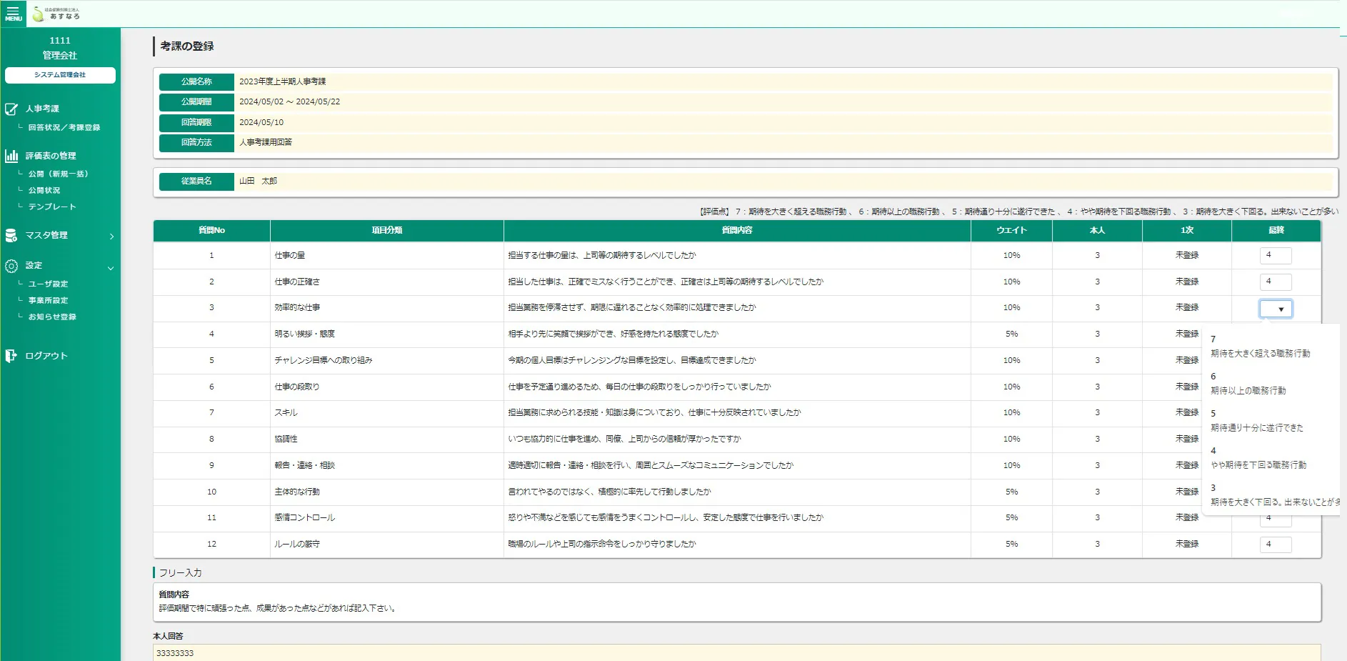 配布を終えると、社員には自分に合った評価シートが自動で表示されるようになります。5 評価入力